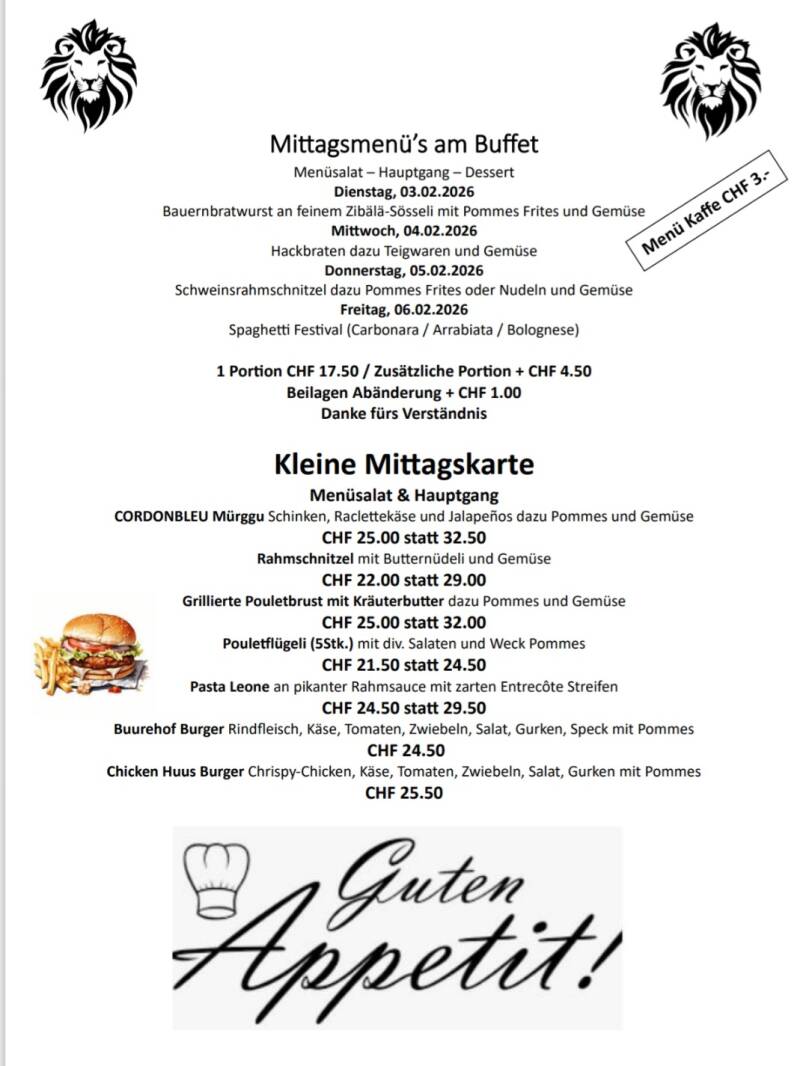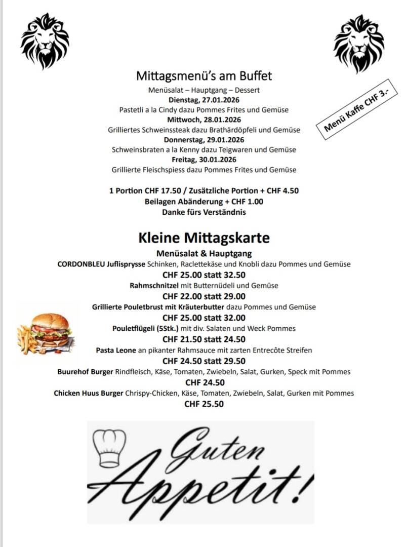 • Mittagsmenü Dienstag - Freitag